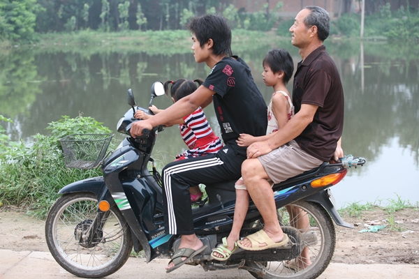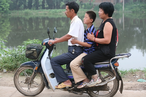 2010년 리버풀비엔날레에 오토바이를 탄 가족을 담은 역시 퍼포먼스를 베이스로 하는 비디오 작업이었다. 이것도 역시 중국의 시골에서 한 작업이다. 중국에서 보면서 느꼈던 것은 중국 현재의 사회현상일 뿐만 아니라 결국은 인류가 산업화되면서 계속 겪었던 현상 중에 하나다. 우리가 모르는 현상이 아닌데, 그것이 굉장히 짧은 시기에 극명하게 눈앞에서 펼쳐지는 것을 목격했다. 굉장히 빠른 속도로 달리는 2인용 오토바이에다 가족들이 3명, 4명, 5명, 6명까지 타고 심지어는 옆구리에 애기까지 안고 가는 걸 보면서 저것이 사라질 것이라는 사실을 너무나 잘 인지할 수가 있었다. 그 당시에 상하이에서 고층빌딩이 지어지면서 젊은 사람들이 고향을 떠나고 마을 씨족사회가 계속 파괴되었는데, 그것은 비단 중국사회뿐만 아니라 유럽에도 그런 시기를 거친 것이다. 그래서 이런 오토바이의 소리들이 일종의 가족이 지니고 있는 하나의 목소리처럼 들렸다. 그래서 아주 고요하게 있는 저수지 앞에서 이들이 잠시 멈춰서 엔진을 끄지 않고 정면을 향해서 서 있고, 일종의 사진 찍는 행위처럼 연출하기를 부탁했다. 그래서 열 가족이 참여했다. 그래서 이 작업의 제목을 <Departure Songs> 라고 일종의 출발을 하는 음악같이 그렇게 정했다.